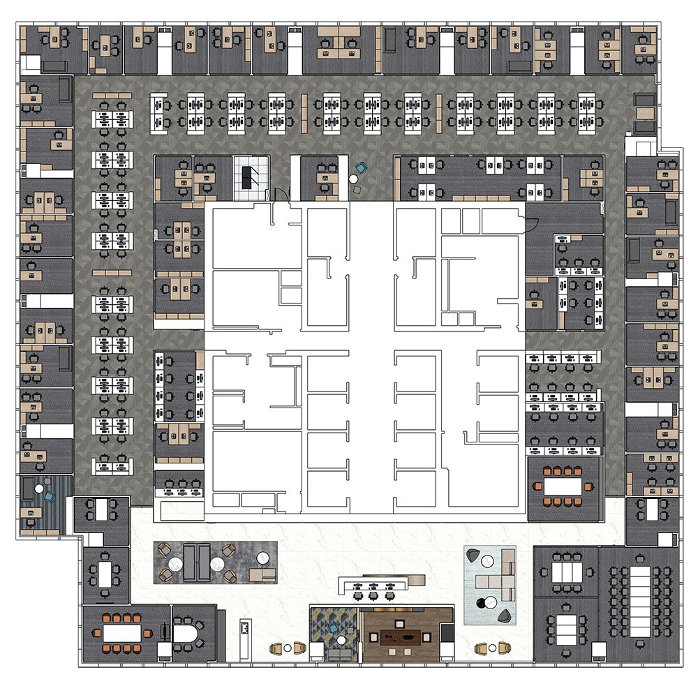 新的空間猶如一張空白紙張,它可以轉(zhuǎn)化一切,可以讓設(shè)計(jì)團(tuán)隊(duì)靈感自由釋放,創(chuàng)造一個(gè)心靈渴望的空間。設(shè)計(jì)團(tuán)隊(duì)與客戶(hù)緊密合作,通過(guò)品牌元素的創(chuàng)新表達(dá)去體現(xiàn)樂(lè)府互娛非凡的品牌文化。工作區(qū)規(guī)劃包括固定的辦公區(qū)、同時(shí)配有靈活/協(xié)作的區(qū)域可供工作和休閑、以及各種形式的私密專(zhuān)注空間/會(huì)議室。